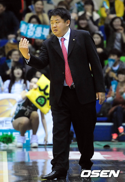 6일 오후 원주 치악체육관에서 열린 '2011-2012 KB국민카드 프로농구' 챔피언결정전 6차전 원주 동부와 안양 KGC 인삼공사의 경기 3쿼터 동부 강동희 감독이 선수들에게 지시를 하고 있다.