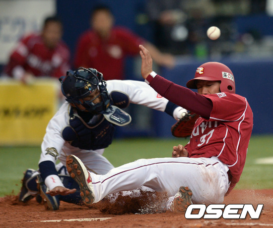 9회초 2사 2루 히지리사와 좌익수앞 안타때 2루 주자 시마 홈까지 뛰어 득점을 올리고 있다.