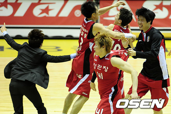 이상범 감독이 지휘하는 안양 KGC인삼공사는 6일 원주 치악체육관에서 열린 '2011-2012 KB국민카드 프로농구' 챔피언결정전 6차전 원주 동부와 원정 경기서 66-64로 역전승을 거뒀다.