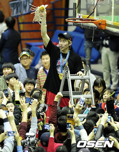 MVP 오세근이 마지막으로 그물을 자르고 기뻐하고 있다./ jpnews@osen.co.kr