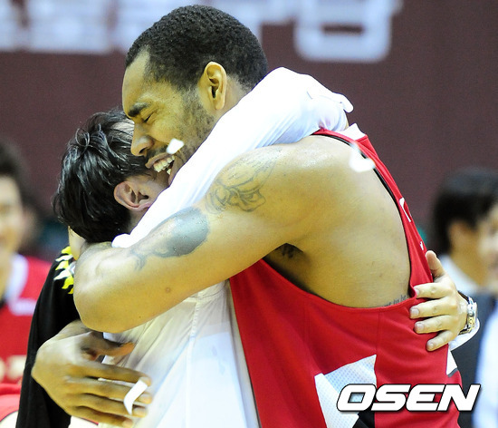 경기종료 후 안양 KGC 이상범 감독과 다니엘스가 껴안고 기뻐하고 있다./ youngrae@osen.co.kr
