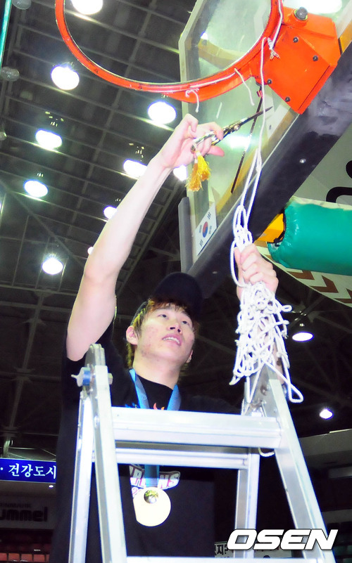 오세근이 림의 그물을 자르고 있다. / baik@osen.co.kr