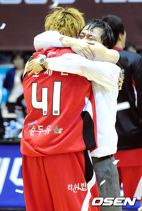 경기종료 후 안양 KGC 이상범 감독과 오세근이 껴안고 기뻐하고 있다./ youngrae@osen.co.kr