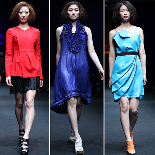 정규진 디자이너는 블랙, 화이트, 바이올렛, 아이보리, 그린, 레드 색상을 이용해 새콤달콤, 섹시, 활발, 지적인 면을 과감히 옷으로 표현했다.