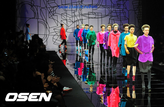 7일 오전 서울 잠실 올림픽공원에서 열린 '2012-2013 춘계 서울패션위크' 신장경 패션쇼에서 모델들이 피날레 무대를 선보이고 있다.