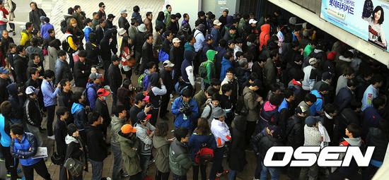 7일 오후 부산 사직구장에서 열리는 2012 팔도 프로야구 개막전 롯데 자이언츠와 한화 이글스의 경기 전 수많은 팬들이 줄서서 기다리고 있다.