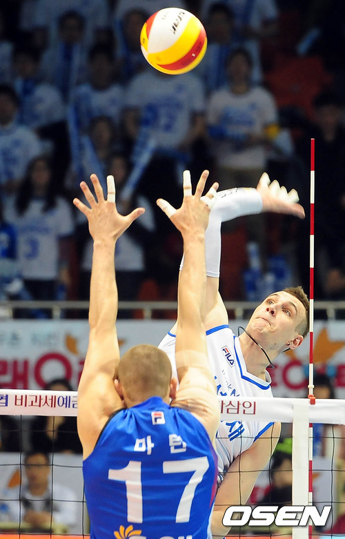 7일 오후 대전 충무체육관에서 열린 '2011-2012 NH농협 V리그' 남자부 챔피언결정전 1차전 삼성화재와 대한항공의 경기 1세트 삼성화재 가빈이 공격을 시도하고 있다.