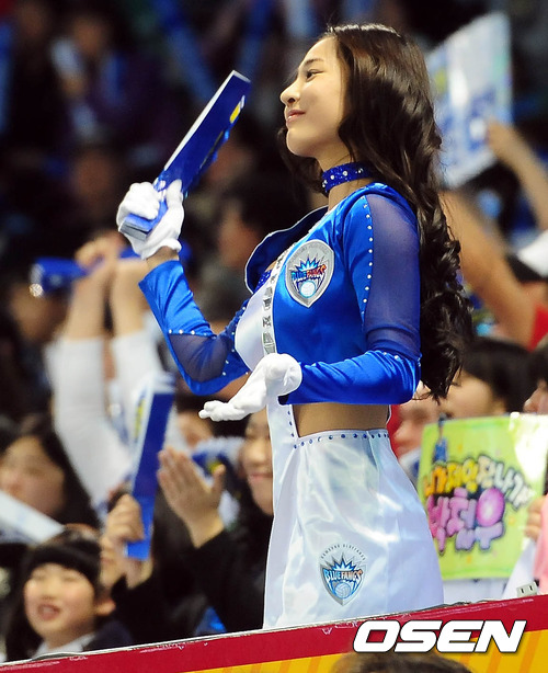 7일 오후 대전 충무체육관에서 열린 '2011-2012 NH농협 V리그' 남자부 챔피언결정전 1차전 삼성화재와 대한항공의 경기, 치어리더가 관중석에서 응원을 펼치고 있다.