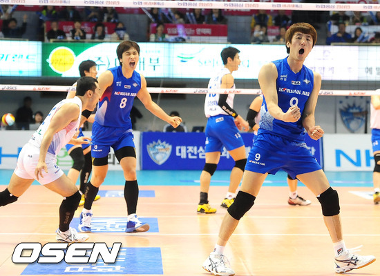 대한항공은 마틴(33득점)과 김학민(16득점)이 공격을 주도하고 곽승석이 안정된 서브 리시브로 뒤를 받쳤다. 여기에 감초처럼 활약한 이영택(9득점, 블로킹 5득점)이 분전했으나 가빈의 벽을 넘지 못하고 1차전을 내주고 말았다.