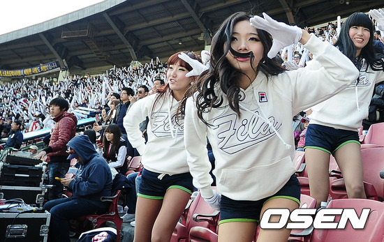 두산 치어리더가 열띤 응원을 선보이고있다.