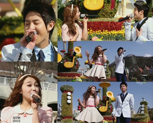 7일 방송된 MBC '쇼 음악중심'에 출연한 요섭&은지는 듀엣곡 '러브데이(Love Day)'를 야외무대에서 봄날의 햇살을 느끼며 열창했다.