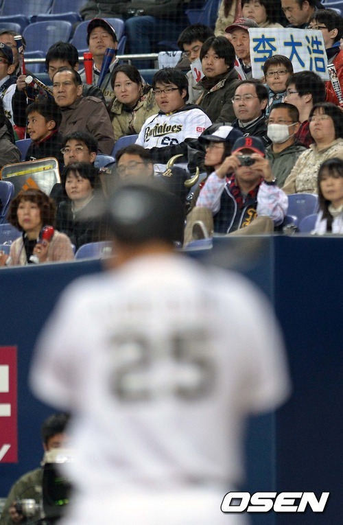 이대호는 지난 6일 라쿠텐 골든이글스와의 홈 개막전에 1루수 4번 타자로 선발 출장했다. 이날 이대호는 9회 마지막 타석에서 안타를 추가하며 4타수 1안타를 기록, 시즌 타율이 2할5푼9리(27타수 7안타)로 약간 내려갔다./ ajyoung@osen.co.kr