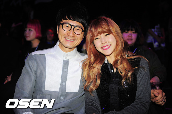7일 오후 서울 잠실 올림픽공원에서 열린 '2012-2013 춘계 서울패션위크' 박항치 패션쇼'에 주영훈 이윤미 부부가 객석에서 패션쇼를 기다리고 있다.