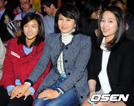 7일 오후 서울 잠실 올림픽공원에서 열린 '2012-2013 춘계 서울패션위크' 박항치 패션쇼에서 탤런트 유지인이 딸들과 객석에 앉아 패션쇼를 기다리고 있다.