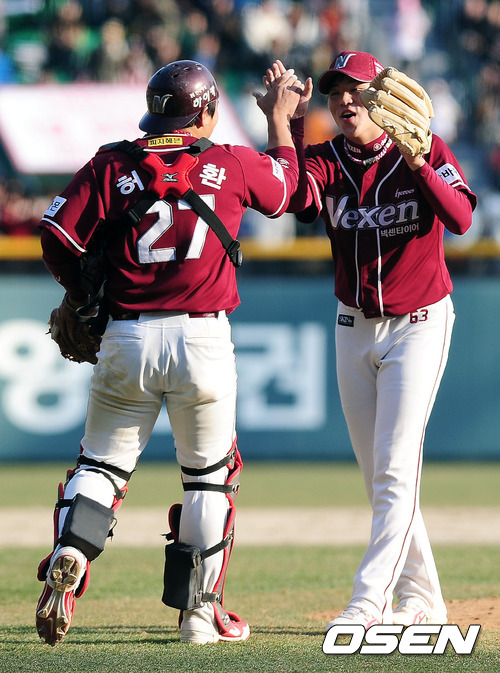 경기후 넥센 허도환과 한현희가 하이파이브를 하고 있다./ jpnews@osen.co.kr