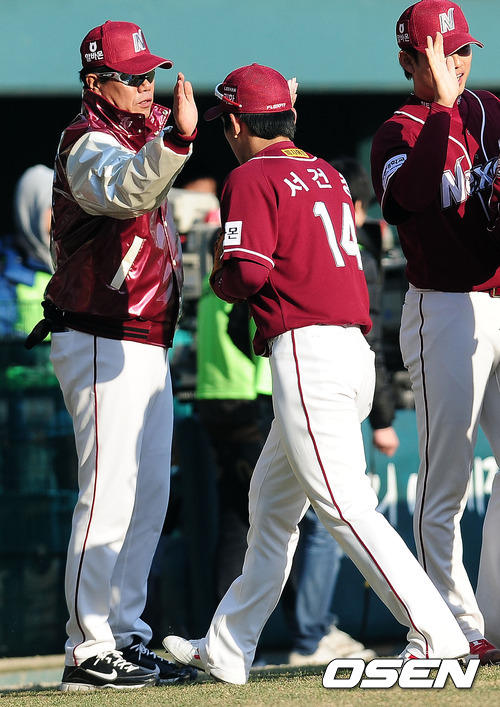 경기후 넥센 김시진 감독이 서건창과 하이파이브를 하고 있다./ jpnews@osen.co.kr