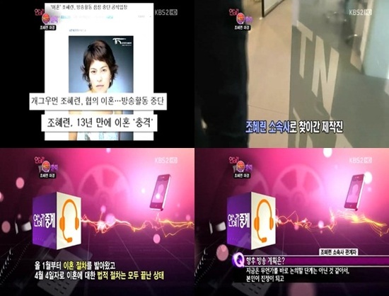 이날 방송에서 조혜련 소속사 측과 전화연결을 한 '연예가중계' 제작진은 조혜련의 이혼에 대해 "올 1월부터 이혼 절차를 밟았으며 지난 4일자로 이혼에 대한 법적 절차를 모두 끝낸 상태다"라는 소속사 측의 답을 들었다.