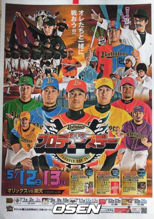 오릭스 버펄로스와 라쿠텐 골든이글스의 경기를 앞둔 7일 오사카 교세라 돔 오사카(이하 교세라 돔). 오릭스 구단 관계자가 취재진들에게 한 장 한 장 유인물을 돌렸다. 다음달 12일과 13일 이틀 동안 홈 구장에서 열릴 예정인 팬미팅을 홍보하기 위한 인쇄물이었다. 유심히 보니 재미있는 그림이 담겨있다. 1990년대 국내에서도 인기를 끌었던 후뢰시맨·마스크맨과 같은 '특촬물' 형식으로 홍보 인쇄물을 만든 것이다.