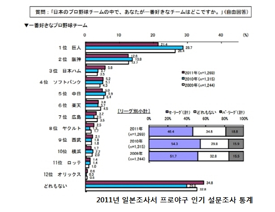 일본 프로야구는 도쿄에 연고를 두고 있는 요미우리 자이언츠와 오사카에 연고를 둔 한신 타이거즈가 인기를 양분하고 있다고 해도 과언이 아니다. 한때 일본 프로야구에 대해 '요미우리 팬과 반 요미우리 팬이 있다'라고 할 정도로 요미우리의 인기는 압도적이었지만, 최근에는 인기가 많이 떨어지고 평준화 된 상황이다.