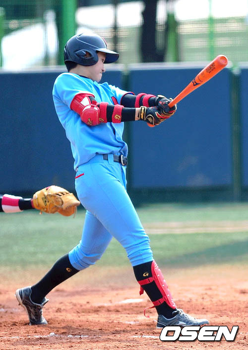 8일 오전 서울 신월동 신월야구장에서 열린 '2012 고교야구 주말리그' 휘문고와 중앙고의 경기 2회초 2사 만루 휘문고 김성표가 2타점 적시타를 올리고 있다.