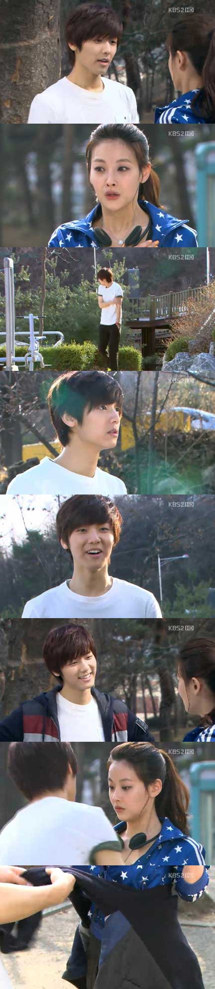강민혁이 시크하게 다가가 허리에 옷을 매준 뒤 "다른 남자들이 쳐다보니 짧은 바지를 입고 뛰지 말라"는 작업 멘트와 함께 꽃미소를 날리자 오연서는 이미 거부할 수 없는 그의 매력에 빠져들게 된 것.