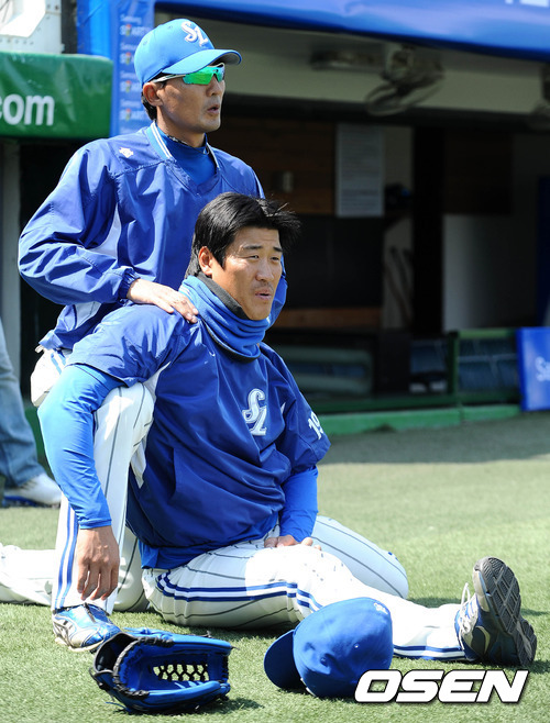8일 오후 대구야구장에서 열린 '2012 팔도 프로야구' 삼성 라이온즈와 LG 트윈스의 경기, 경기 전 삼성 정현욱이 스트레칭을 하고 있다.