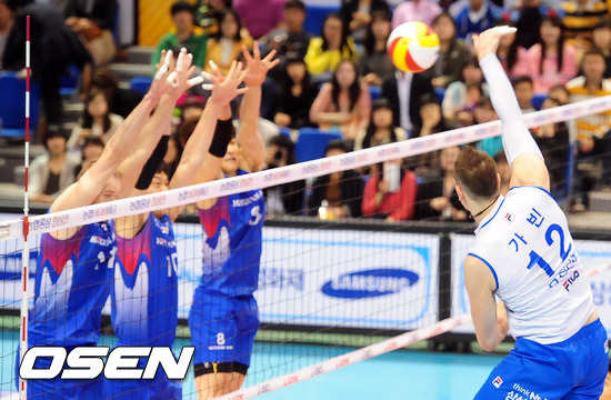 8일 오후 대전 충무체육관에서 열린 '2011-2012 NH농협 V리그' 남자부 챔피언결정전 2차전 삼성화재와 대한항공의 경기 2세트 삼성화재 가빈이 공격을 시도하고 있다.