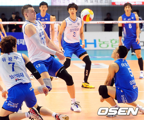 8일 오후 대전 충무체육관에서 열린 '2011-2012 NH농협 V리그' 남자부 챔피언결정전 2차전 삼성화재와 대한항공의 경기 2세트 대한항공 여오현이 공을 살리고 있다.