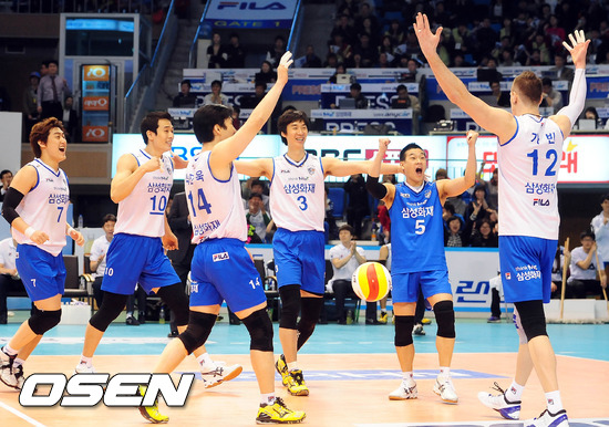 8일 대전 충무체육관에서 열린 2011-2012 NH농협 V리그 남자부 챔피언결정전 2차전에서 삼성화재가 대한항공에 3-1(25-19, 24-26, 25-22, 25-21)로 승리를 거두며 V6까지 단 1승만을 남겨두게 됐다.