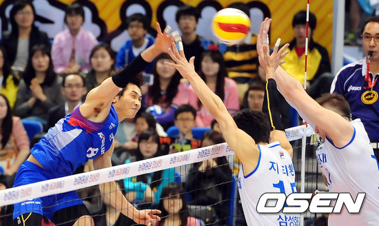 먼저 매치포인트 상황에 간 쪽은 대한항공이었다. 삼성화재는 가빈이 백어택을 성공시키며 듀스까지 쫓아갔지만 이영택의 속공과 마틴의 오픈에 연달아 당하며 2세트를 26-24로 내줬다.