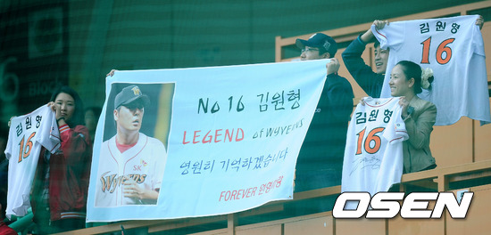 경기전 SK 김원형 은퇴식에 팬들이 응원을 보내고 있다./ jpnews@osen.co.kr