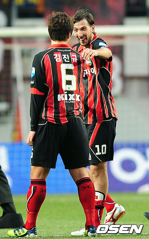 경기 종료후 서울 데얀이 김진규와 기뻐하고 있다. /youngrae@osen.co.kr