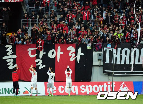 경기 종료후 상무 최효진, 김치우, 이종민이 FC 서울 팬들에게 인사를 하고 있다. /youngrae@osen.co.kr