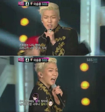 이승훈의 무대를 접한 심사위원 보아는 "무대 아이디어는 참 좋은데 항상 승훈 군에게는 랩의 스토리가 없으면, 무대가 정신이 없다. 스토리도 약했고, 감동도 없었다"고 전했다.