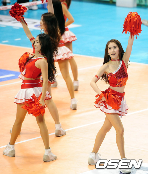 8일 오후 대전 충무체육관에서 열린 '2011-2012 NH농협 V리그' 여자부 챔피언결정전 5차전 KGC인삼공사와 현대건설의 경기, 치어리더들이 공연을 펼치고 있다.
