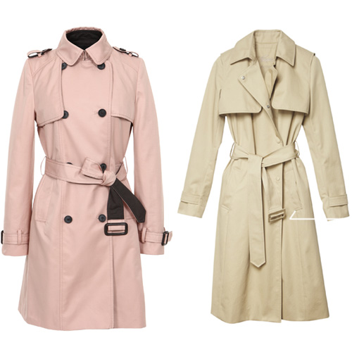 이번 시즌 트렌치코트는 베이지 컬러와 화사한 파스텔컬러가 함께 출시되고 있어 고르는 재미를 더하고 있다.
