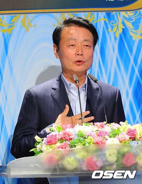 9일 오후 서울 양재문화회관에서 진행된 '2011-2012 KB국민카드 프로농구' 시상식에서 한선교 KBL총재가 축사를 하고 있다.