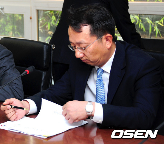 10일 오전 서울 도곡동 야구회관에서 한국야구위원회(KBO) 제3차 이사회가 열려 NC 이태일 사장이 회의에 앞서 안건을 살펴 보고 있다.