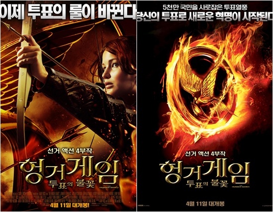 여기에 티저 포스터를 변형한 포스터 역시 '1,600만 명을 사로잡은 베스트셀러 원작' 대신 '5천만 국민을 사로잡을 투표열풍'이라는 카피 아래 선거 '헝거게임 : 투표의 불꽃'이라는 타이틀로 투표를 독려하는 절묘한 카피와 비주얼을 선보인다.