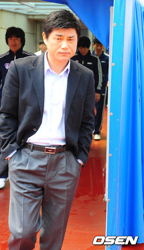 11일 오후 수원 월드컵경기장에서 열린 ‘현대오일뱅크 K리그 2012’ 7R 수원 삼성과 포항 스틸러스의 경기에서 앞서 윤성효감독이 그라운드로 입장 하고 있다.