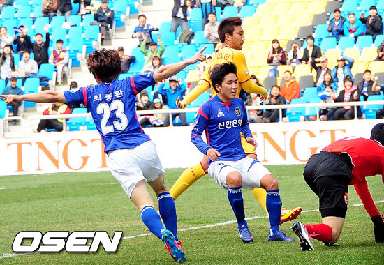 11일 오후 인천축구경기장에서 열린 '현대오일뱅크 K리그 2012' 인천 유나이티와 광주 FC의 경기 전반 인천 최종환이 선제골을 넣고 세레모니를 하고 있다.