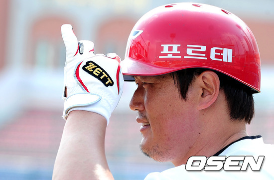 11일 오후 광주구장에서 열린 '2012 팔도 프로야구' KIA 타이거즈와 삼성 라이온즈의 경기, 경기전 KIA 최희섭이 타격훈련을 준비하고 있다.