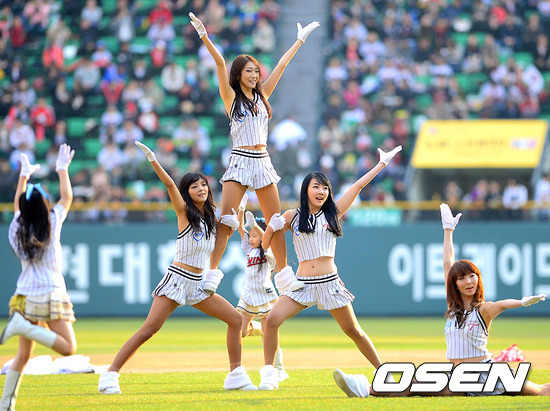 11일 오후 서울 잠실구장에서 열린'2012 팔도 프로야구' LG 트윈스와 롯데 자이언츠의 홈 개막전 경기전 LG 치어리더가 멋진 무대를 펼치고 있다