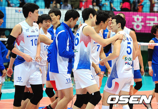 경기를 마치고 대한항공 선수들이 기뻐 하고 있다. / youngrae@osen.co.kr