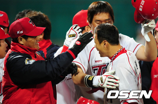 경기후 KIA 김원섭이동료선수들의 축하를 받고 있다./jpnews@osen.co.kr