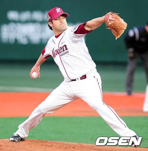 12일 오후 서울 목동구장에서 열린 '2012 팔도 프로야구' 넥센 히어로즈와 SK 와이번스의 경기 1회초 넥센 선발 나이트가 공을 던지고 있다.