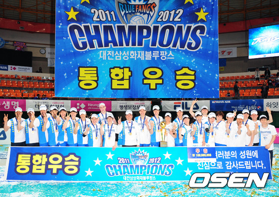 삼성화재는 12일 인천 도원실내체육관에서 열린 2011-2012시즌 NH농협 V리그 남자부 챔피언결정전 4차전에서 대한항공을 세트스코어 3-0(25-22, 25-21, 25-17)로 꺾고 5년 연속 우승과 동시에 통산 6번째 우승컵을 들어올렸다.