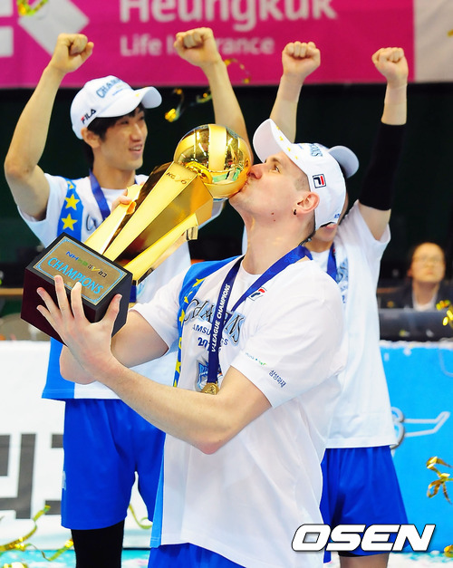 경기를 마치고 삼성화재 가빈이 우승 트로피를 받으며 트로피에 키스를 하고 있다. / rumi@osen.co.kr
