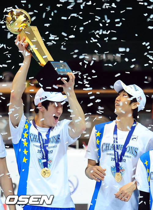 삼성화재는 12일 인천 도원실내체육관에서 열린 2011-2012시즌 NH농협 V리그 남자부 챔피언결정전 4차전에서 대한항공을 세트스코어 3-0(25-22, 25-21, 25-17)로 꺾고 5년 연속 우승과 동시에 통산 6번째 우승컵을 들어올렸다.