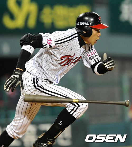 13일 오후 서울 잠실야구장에서 열린 '2012 팔도 프로야구' LG 트윈스와 KIA 타이거즈의 경기, 8회말 1사 1,3루에서 LG 김용의가 동점타를 치고 달리고 있다.